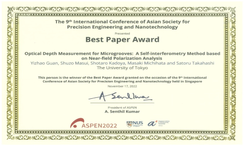 Recommended citation: Y. Guan. S.Masui, S. Kadoya, M. Michihata and S. Takahashi, "Optical Depth Measurement for Microgrooves: A Self-interferometry Method based on Near-field Polarization Analysis." ASPEN2022, OR-15-0084, Nov. 2022, Singapore.
